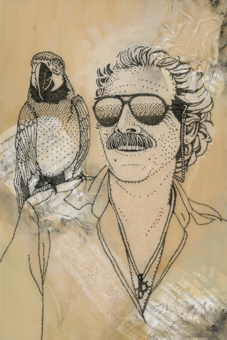 I love the idea of creating something with another connected thing. Using theories to outline horn rimmed glasses. Song lyrics twisted and turned into locks of hair. Heart-aching poems carved into crows feet. Culture defining philosophies stitched into a silk robe. Gathering these beautiful writings and celebrating them collectively with something as dynamic as the Artists portrait.
